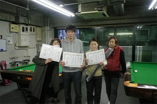 全国各地のビリヤード場では、ビギナー限定の大会からプロプレイヤーも参加する大会まで、ビリヤード場主催の大小様々な「ハウストーナメント」が開催されています。ここでは、その中から、当サイトへ情報をお寄せ頂いた大会の結果を紹介しています。写真下のテキストは、上から「ビリヤード場所在地/店名/大会名/開催日/優勝者(クラス)/準優勝者(クラス)/優勝者またはお店からの一言」です。