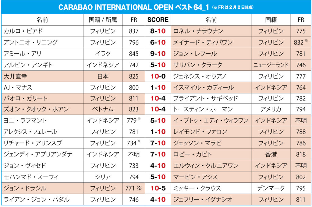 大井直幸がベスト32へ、次戦は日本時間19時から