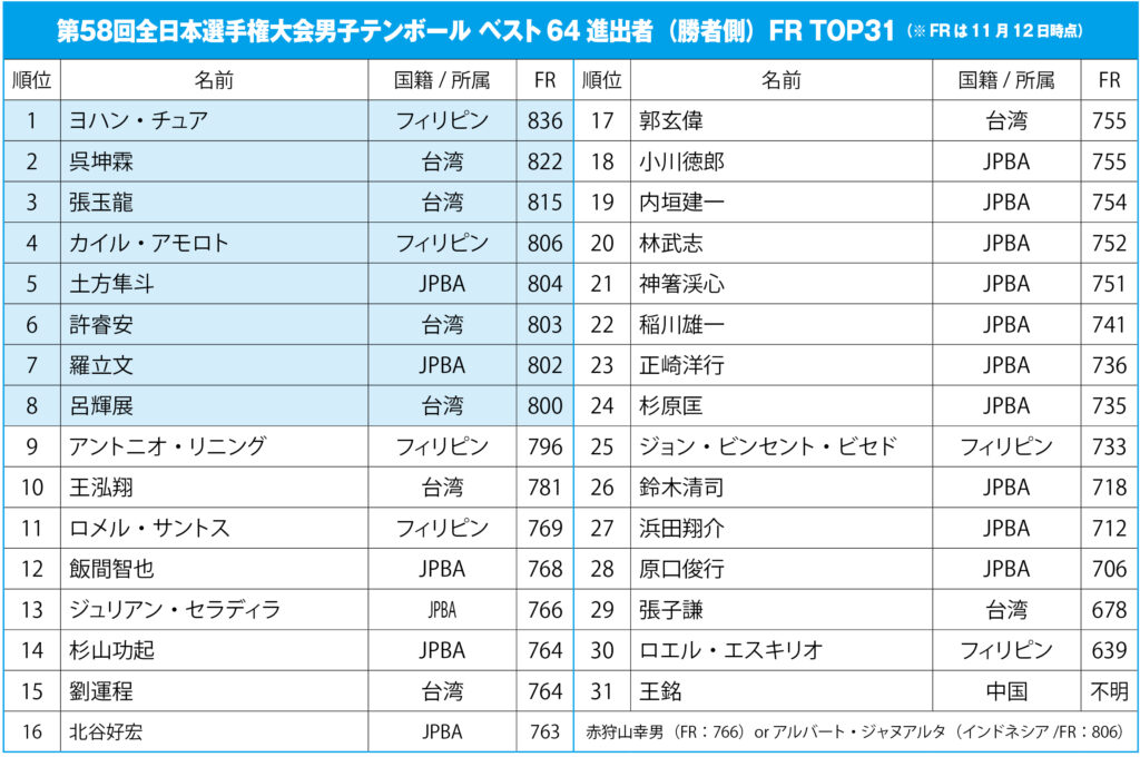 男子テンボールステージ1が終了、本戦出場28名が決定