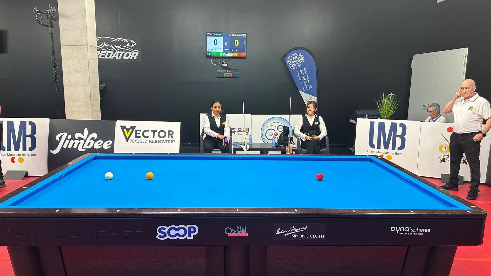 決勝トーナメント1回戦は日本時間24日19時からのスタートで、8月に中国・杭州で開催されたワールドゲームズで銀メダルを獲得した『日本プロビリヤード連盟』(JPBF)所属の宮下綾香、同じくJPBF所属で、今年の全日本女子スリークッション選手権者の西本優子、同大会準優勝の深尾典子アマ(Kobby’s Billiards)が、それぞれクラウディア・チャコン(コロンビア)、カリーナ・イェッテン(オランダ)、グエン・ティ・リエン(ベトナム)と対戦した。