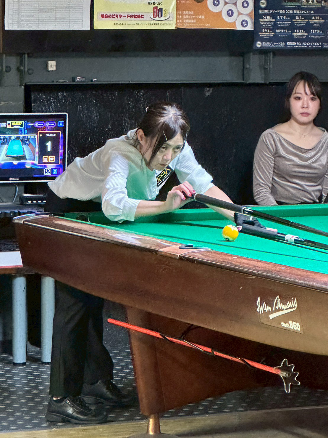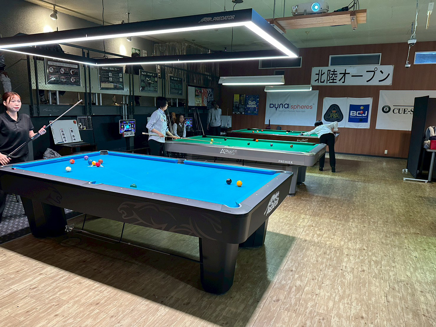 『日本プロポケットビリヤード連盟』(JPBA)のランキング対象公式戦であり、北陸地区最大のオープントーナメントでもある『第36回北陸オープン』の初日、プロ30名、アマ34名の計64名による女子ナインボールの戦いが石川県野々市市の『VIVA2』と富山県砺波市の『リボルバーとなみ店』の2ヵ所のビリヤード場で進行中だ。