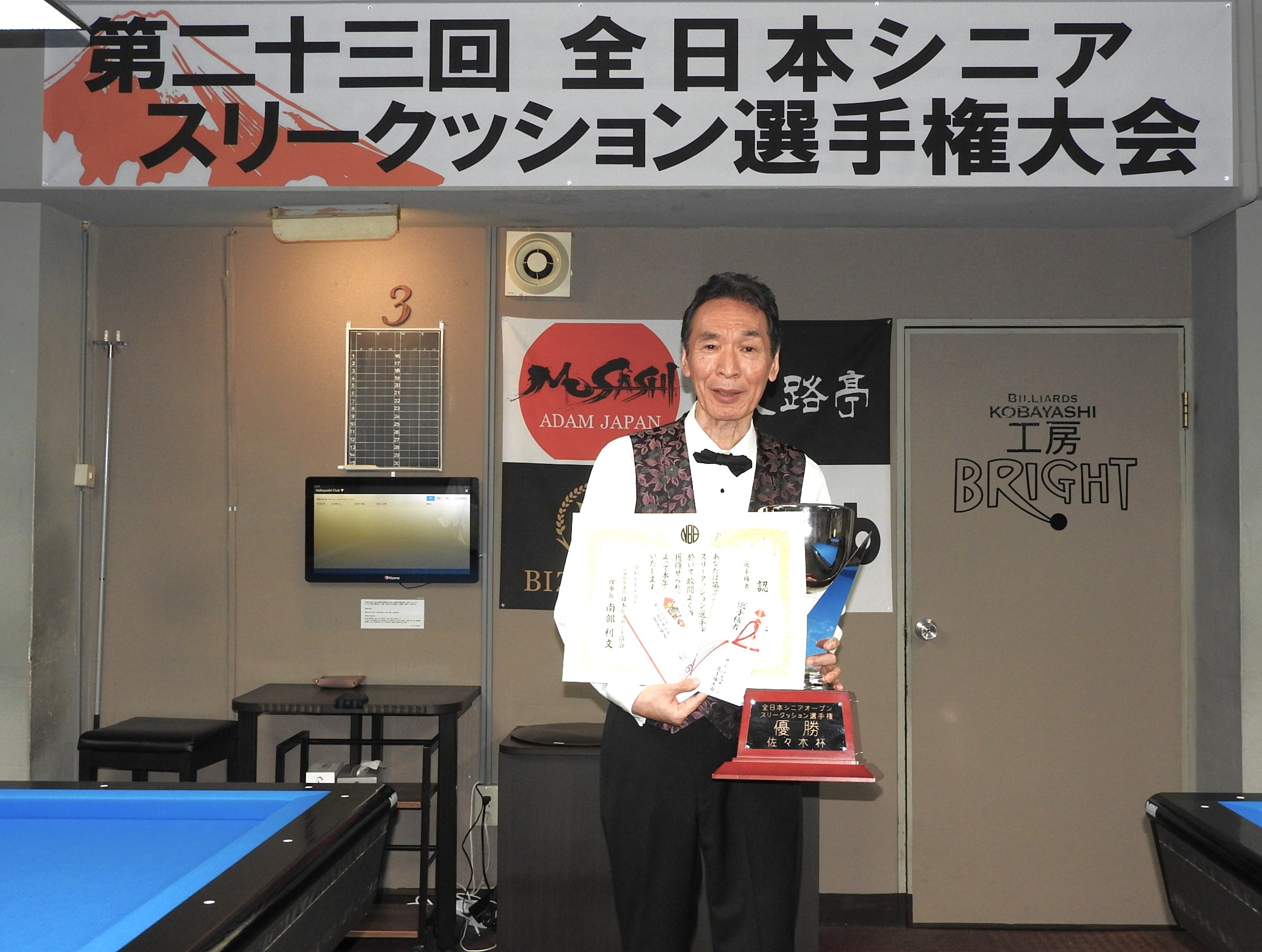 10月13日(月・祝)、東京・新大久保の『KOBAYASHI -BRIGHT-』を会場(予選は『松山』、『NABBI』、『GLANZ』を併用)に『日本プロビリヤード連盟』(JPBF)主催による『第23回全日本シニア3C選手権大会』が開催された。