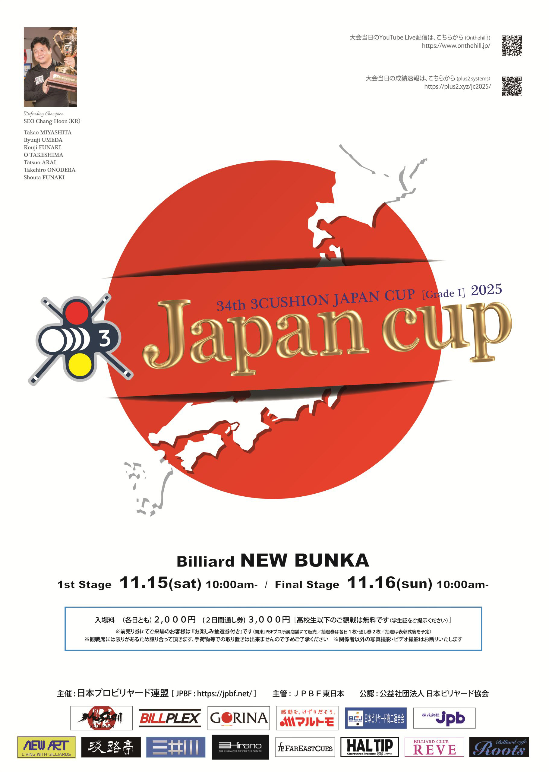 なお、今週末の19日(日)には、11月15日〜16日(土・日)に『Billiard NEW BUNKA』開催されるランキング対象公式戦『34th 3-Cushion JAPAN CUP』(ジャパンカップ)の東日本予選が、東京都内の9ヵ所のビリヤード場で開催されることとなっている。