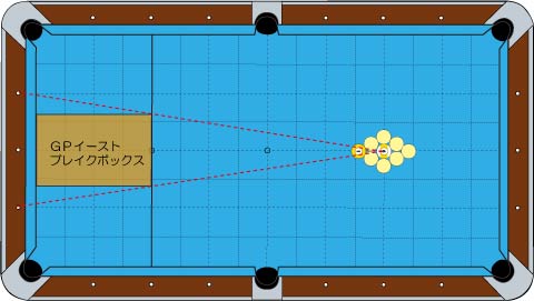 ヘッドスポットから左右約20.25センチが手球を置ける範囲となる