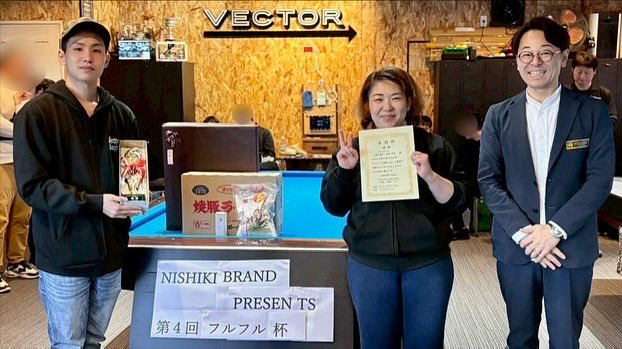 まず第4回は、これまでの3回とは異なる大きな特徴があった。それは、初めて冠スポンサーを迎えての開催となった点で、タップを中心としてビリヤードアイテムを展開している『NISHIKI BRAND』がその意義に賛同し、大会をサポート。これに加え多くの協賛社、『公益社団法人日本ビリヤード協会(NBA)九州支部』、JPBA九州支部、『日本アマチュアポケットビリヤード連盟(JAPA)九州支部』といったビリヤード団体、さらに会場の『VECTOR』を始めとした手厚い協力もあり、イベントの継続性と社会的認知度がさらに高まった形となった。