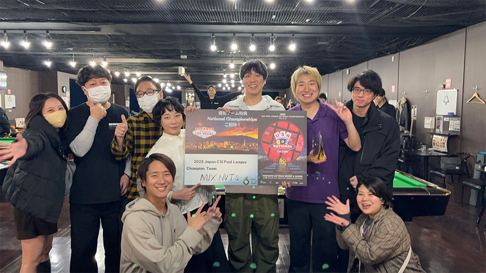3年目のシーズンを迎えたJCLは、創設時のエイトボールに加えて今年ナインボールリーグもスタートさせ、今回は2026年2月にアメリカ・ラスベガスで開催される『USA POOL LEAGUE NATIONAL CHAMPIONSHIPS』にエイト、ナイン各1チームが招待出場する。