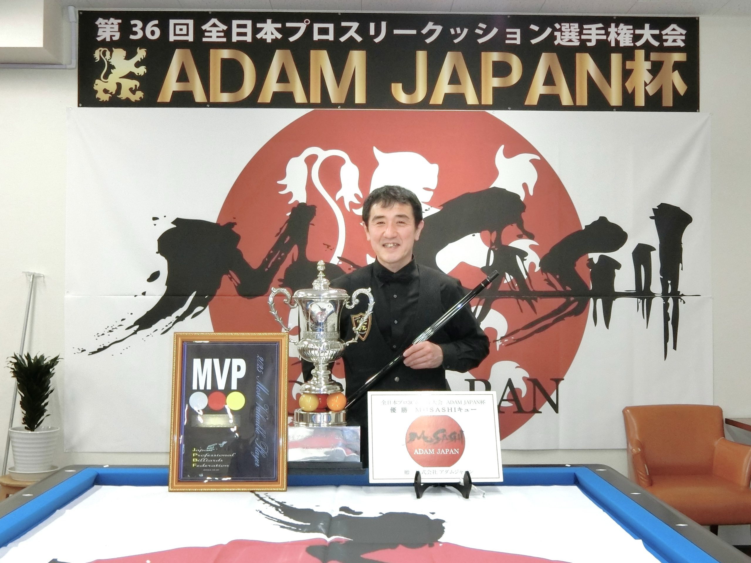 12月20日〜21日(土・日)の2日間にわたり『日本プロビリヤード連盟』(JPBF)主催による『第36回全日本プロスリークッション選手権大会ADAM JAPAN杯』が、東京都世田谷区の『Billiard New Bunka』で開催された。