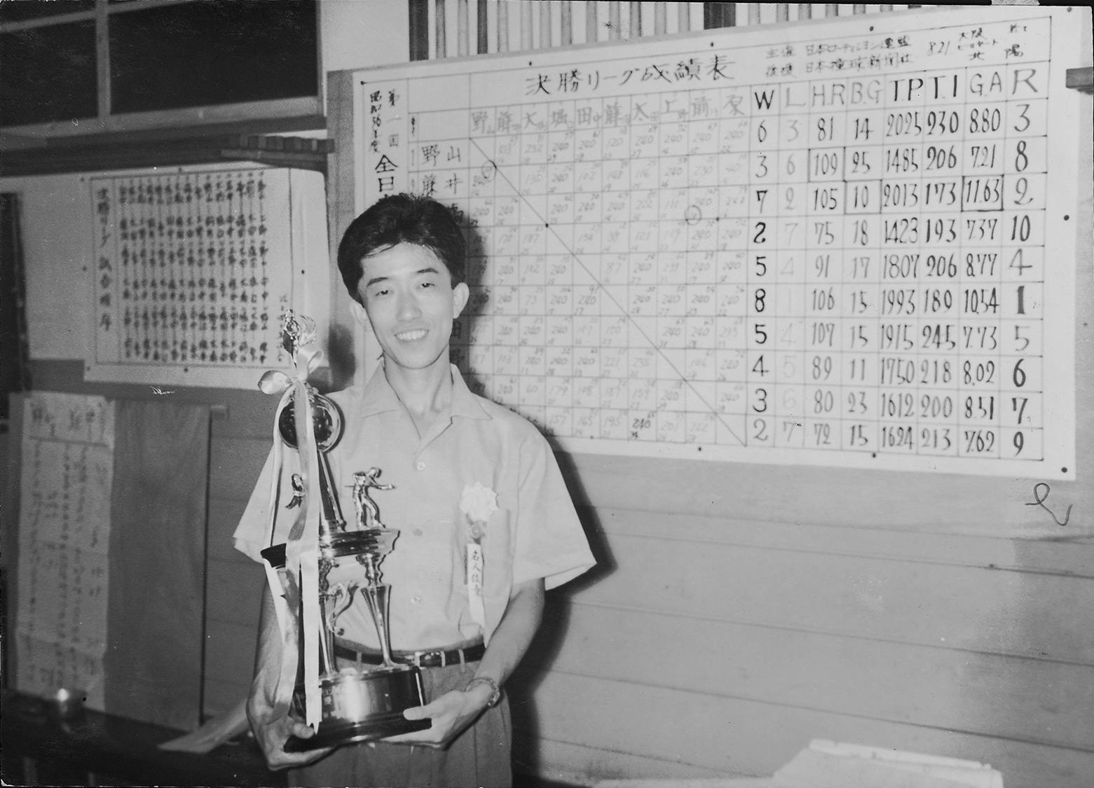 そして1954年には、当時日本最高峰のタイトルとされていた『全日本アマローテーション選手権』(現在の全日本アマチュアポケットビリヤード選手権大会)で優勝。さらに1961年、今も『日本アマチュアポケットビリヤード連盟』(JAPA)の全国主要タイトル戦の1つとして続く『名人戦』の創設に大きく関わり、初代名人の座に就き、その後7期連続で防衛をはたした。