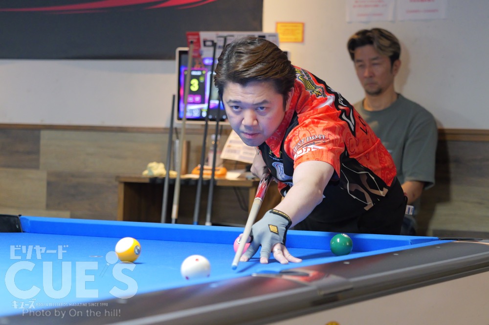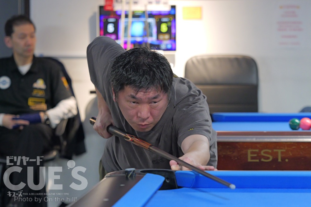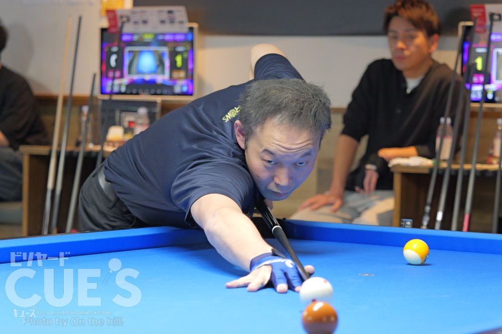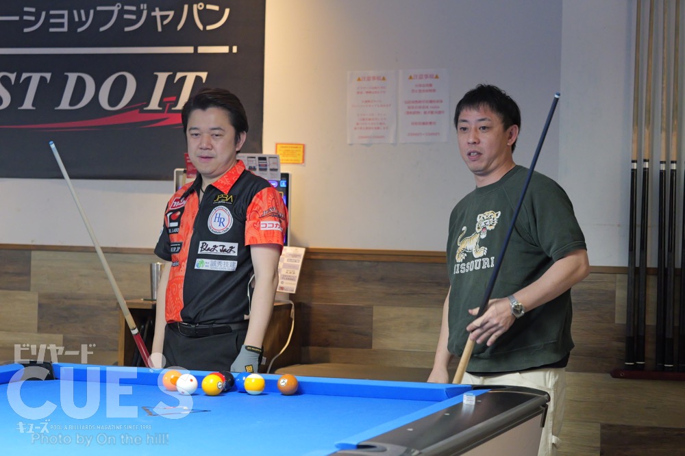 そういった視点から今回のモデルとして参考にしたのはどちらもハンデ戦の『京都オープン』と『セスパカップ』だったという。そして今大会の独自性として打ち出したのが、プロのエントリーを16名に絞ること。「これで16組に一人ずつプロを入れれば、決勝シングル32に最低でも半分アマが残るじゃないですか」という丸岡の言葉がちょっと新鮮で正直嬉しかった。ハンデ戦とは言っても、結局は強い者が勝つのがビリヤードの試合という常識に、こういう考え方もあったのだな、と。実際、ベスト32に残ったプロは13名。そして決勝はプロアマ双方のトップ対決になったのだから主催者の意図通りに進んだわけだ。