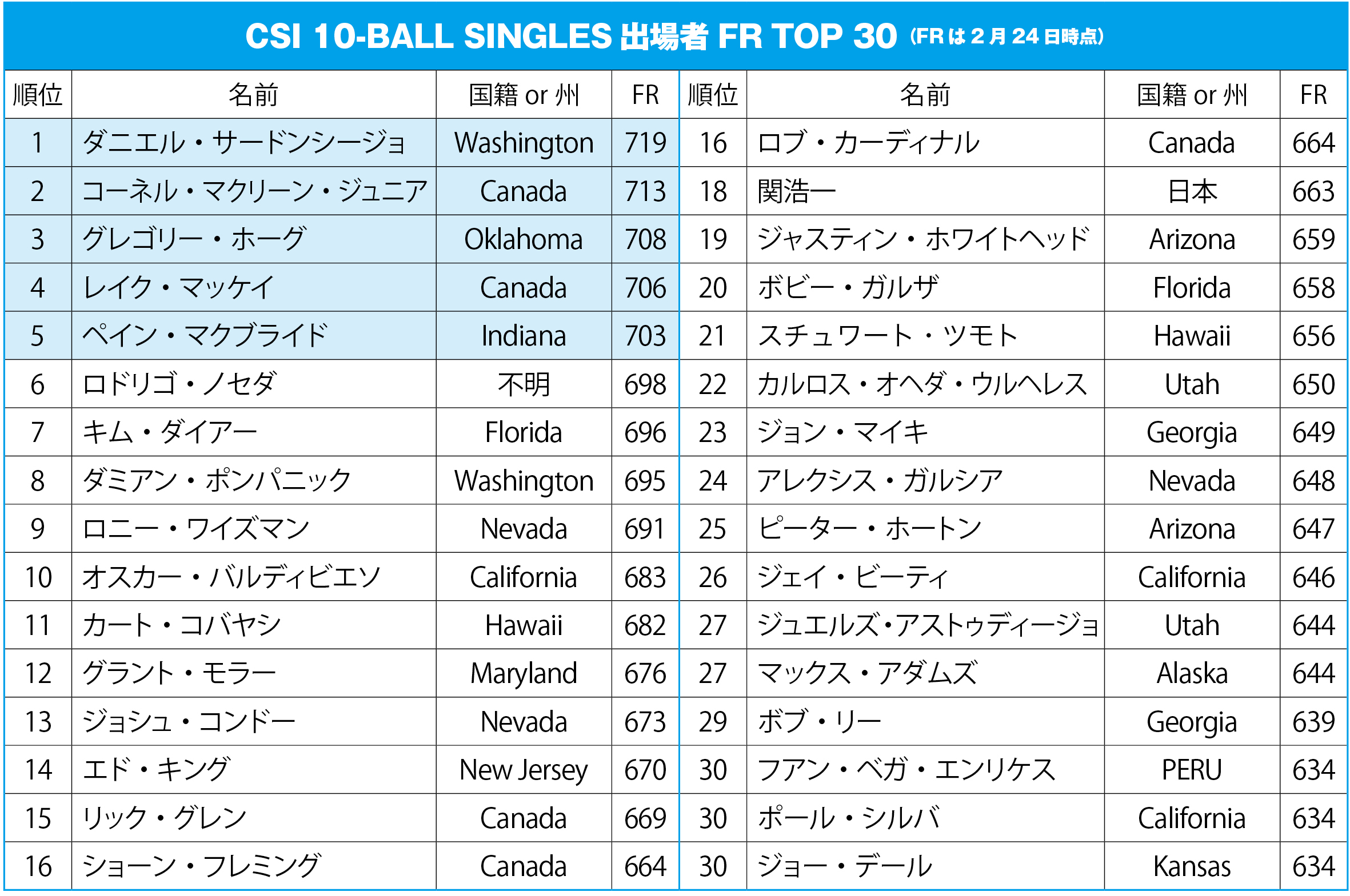 ちなみに今回関氏(FR:663)は、アメリカ、カナダ、日本、ペルーから96名が出場したCSI テンボールシングルス(優勝賞金4,000ドル/約63万円)に出場し、見事に準優勝を果たして賞金2,000ドル(約31万5000円)を獲得している。