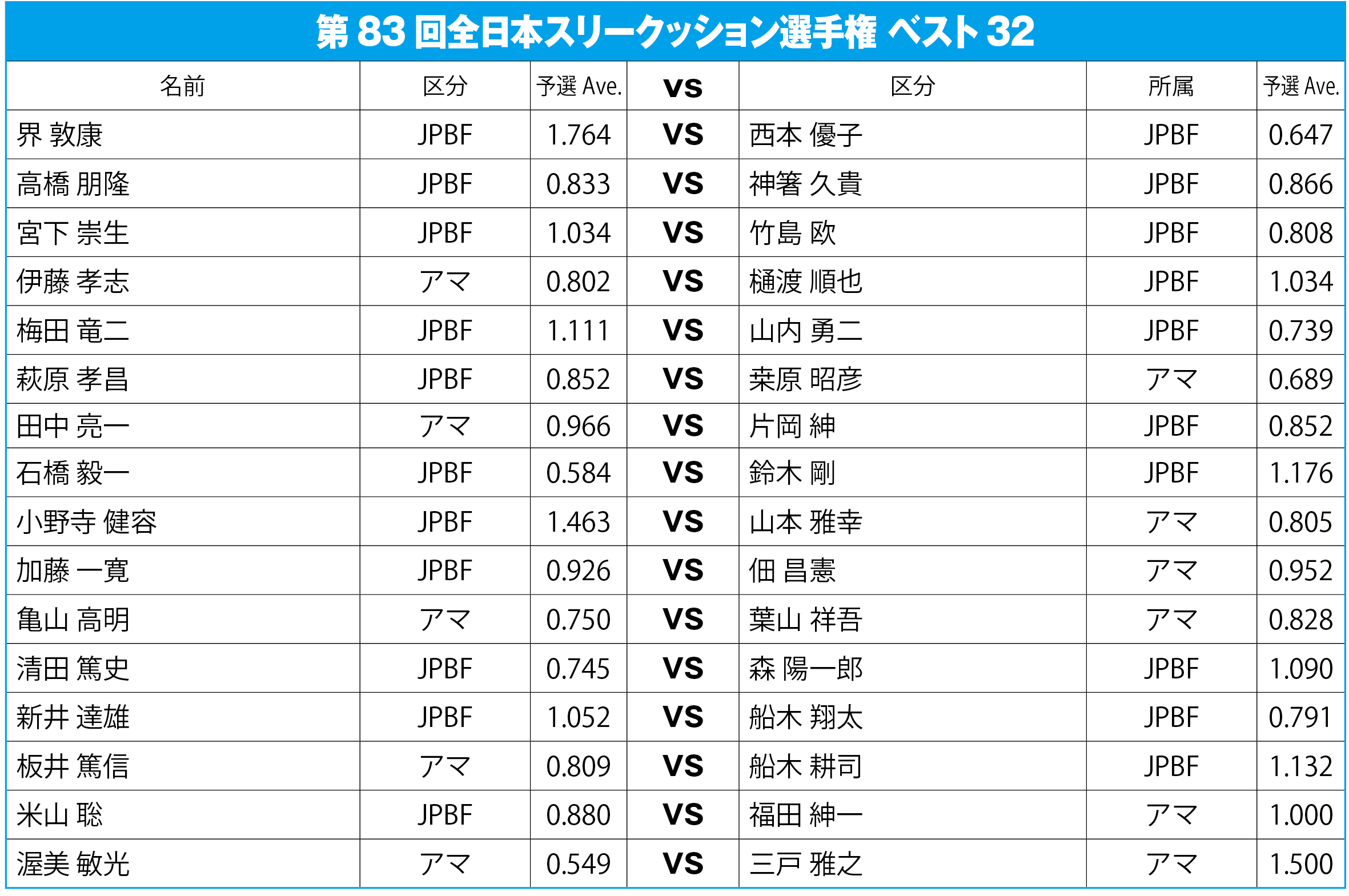 大会ライブスコア:第83回全日本スリークッション選手権大会