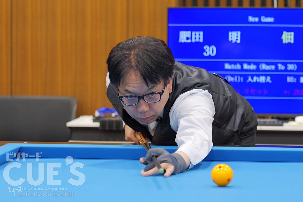 ここからは僅差の攻防が続くも31-31から板井がスリーモア。梅田も37-36まで詰めたが、最後は見事に板井が39キューで押し切った。運営サイドからの情報によれば、関西勢の優勝は大会史上初とのこと。また、アマチュアの優勝は1991年の一瀬励二以来、実に35年ぶりの快挙。何よりも、会場で板井を応援していたアマチュア勢がまるで我がことのように板井の勝利に満面の笑みを浮かべていた姿が印象的だった。