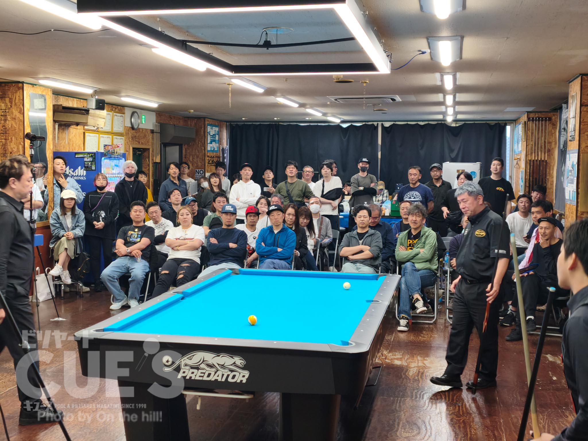 球聖戦に限ったことではないが、セットマッチは先制した方が有利なのは自明の理。18日12時にスタートした第1セットは田中が5-2と先行するも村井が5-6と逆転。田中が追い付いてヒルヒルとなった最終ラックは最後の⑨を村井が穴前残しで田中が先制。しかし第2セットは村井が奮起してタイに戻し、第3セットは田中6-5から村井のマスワリで再びヒルヒル。