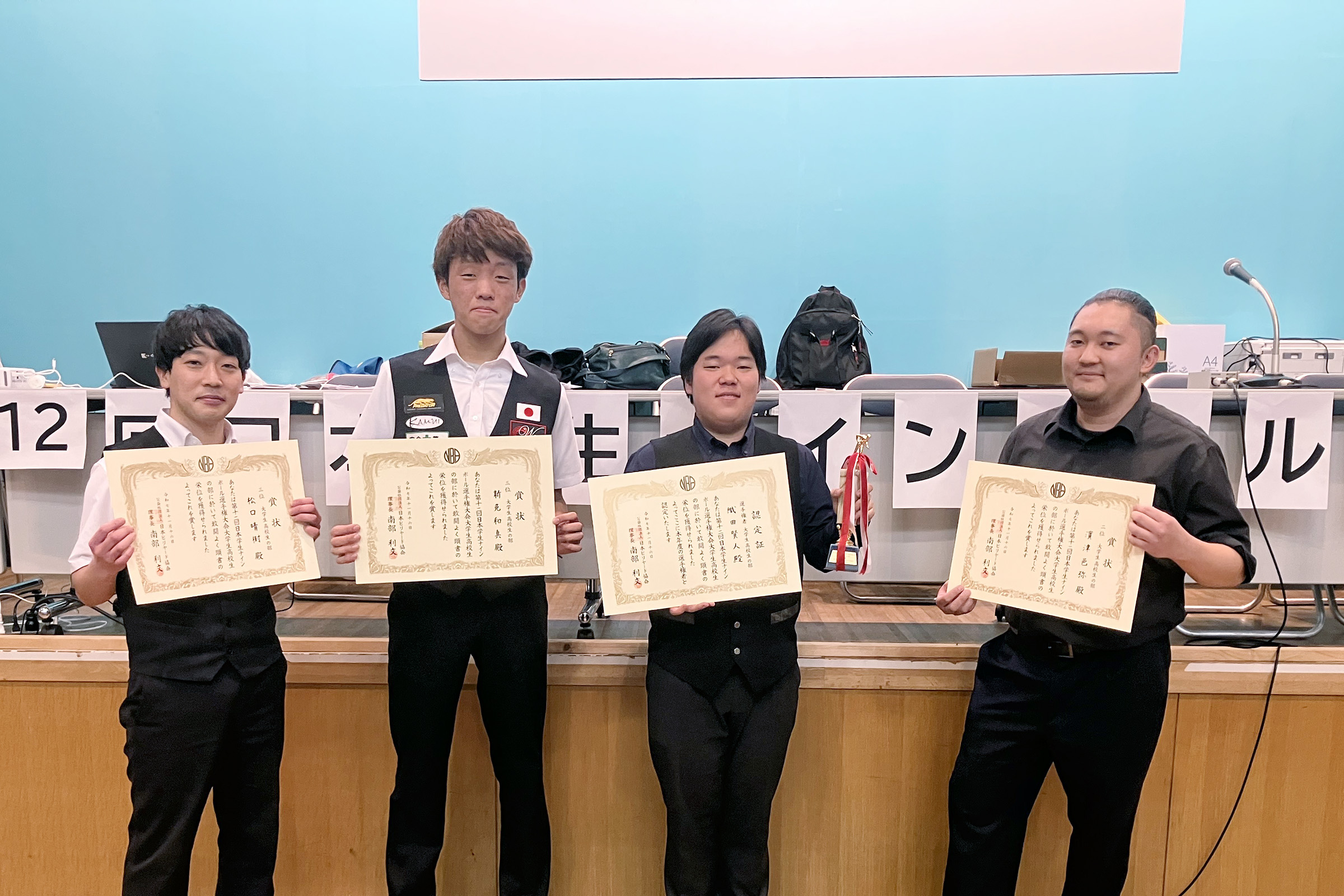 高校・大学の部ベスト4。左から3位タイ:松口、準優勝:新免、優勝:織田、3位タイ:濱津