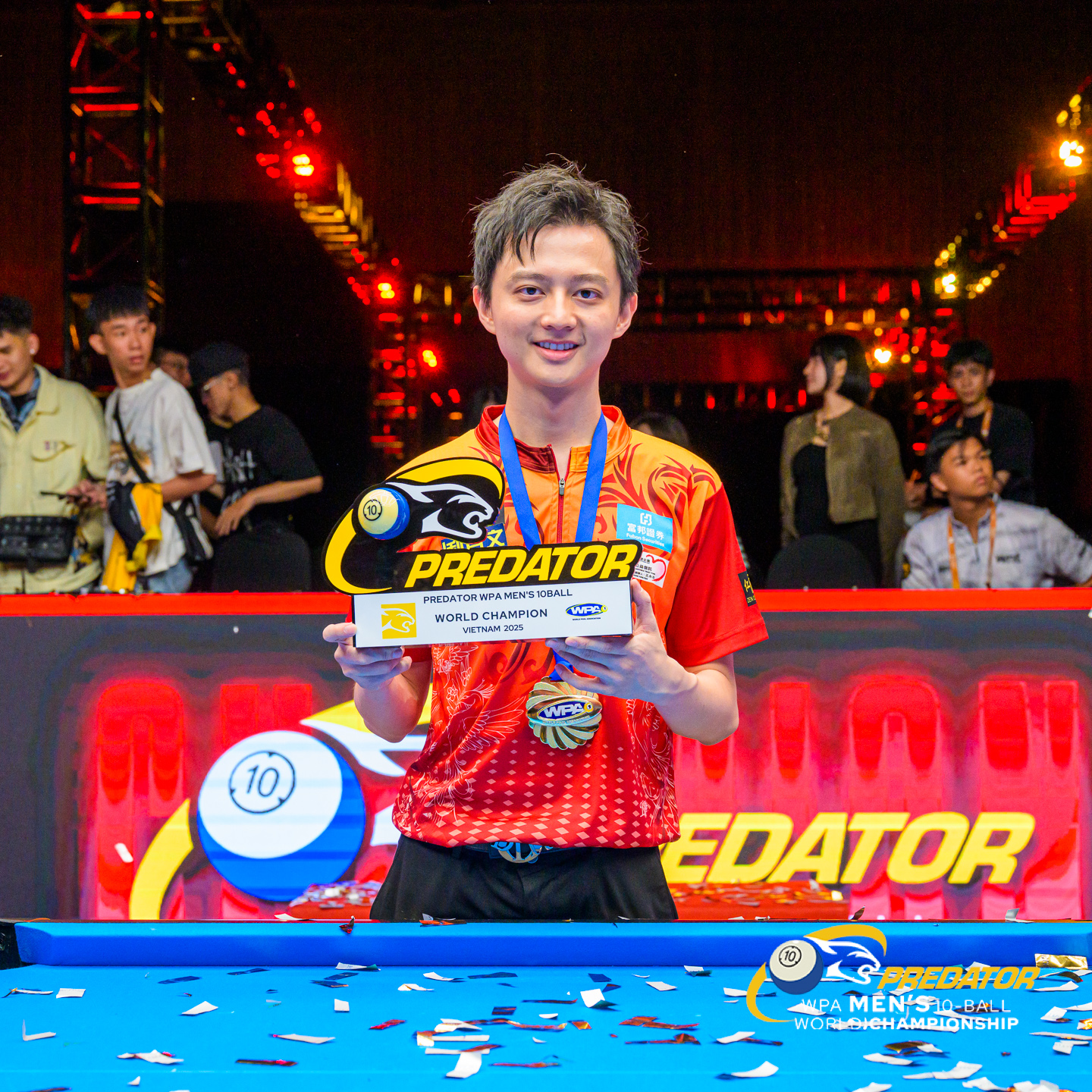 9月20日(土)にスタートしたWPAベトナム3連戦のメインイベント『2025 PREDATOR WPA MEN’S 10-BALL WORLD CHAMPIONSHIP』(男子テンボール世界選手権)が28日(日)に大会最終日を迎え、決勝戦でアレックス・カザキス(ギリシャ/FR:822)を下した柯秉中(台湾/FR:844)が、2019年以来6年ぶりに2度目のテンボール世界王者となった。