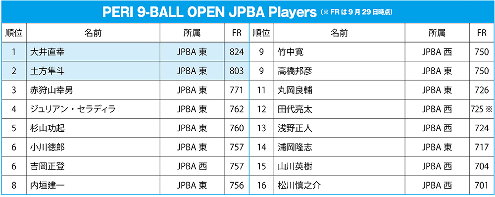 この大会は賞金総額20万ドル、優勝賞金は40,000ドルとメジャー級のトーナメントとなっており、wnt.トップランカーを始め、世界各国から256名が集結し、日本からも以下の『日本プロポケットビリヤード連盟』(JPBA)所属プロ16名と安形泰宏アマ(FR:602)の計17名が出場する。