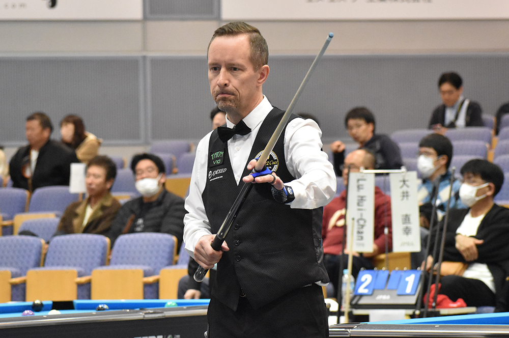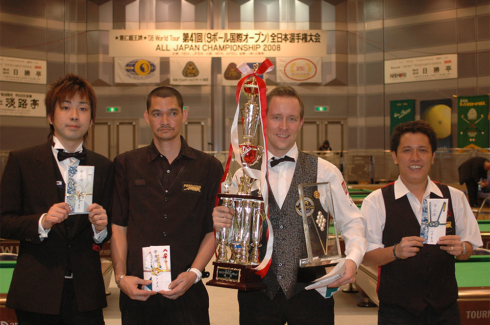 2008年には、当時世界で最もタフなナインボールトーナメントとして世界中からトッププレイヤーが集って争われていたUSオープンを初制覇。その後に来日したイモネンは、これまで3度決勝に進み一度も勝てなかった全日本選手権で遂に優勝を遂げた。