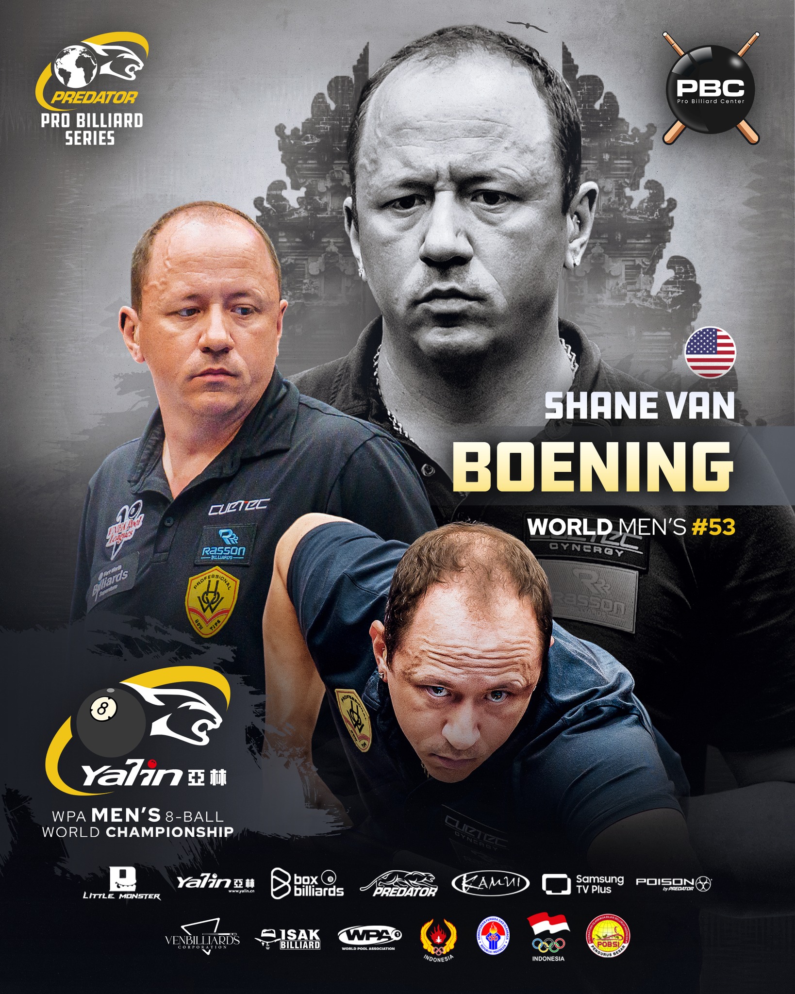 また、WPAランキングは110位とシード権内ではないもののシェーン・バンボーニング(アメリカ/FR:846)は、ジョシュア・フィラー(ドイツ/FR:858)、アルビン・オーシャン(オーストリア/FR:828)らとともにすでに初開催される『『WPA Men’s Doubles World Championship』(男子ダブルス世界選手権)と男子エイトボール世界選手権への出場がPBSから発表されている。