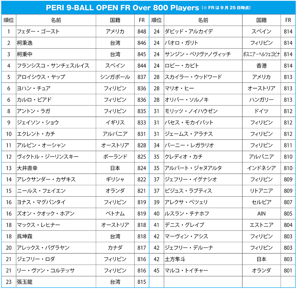 この大会は賞金総額20万ドル、優勝賞金は40,000ドルとメジャー級のトーナメントとなっており、wnt.トップランカーを始め、世界各国から256名が集結し、日本からも『日本プロポケットビリヤード連盟』(JPBA)所属プロ17名とアマ1名の計18名が出場中だ。