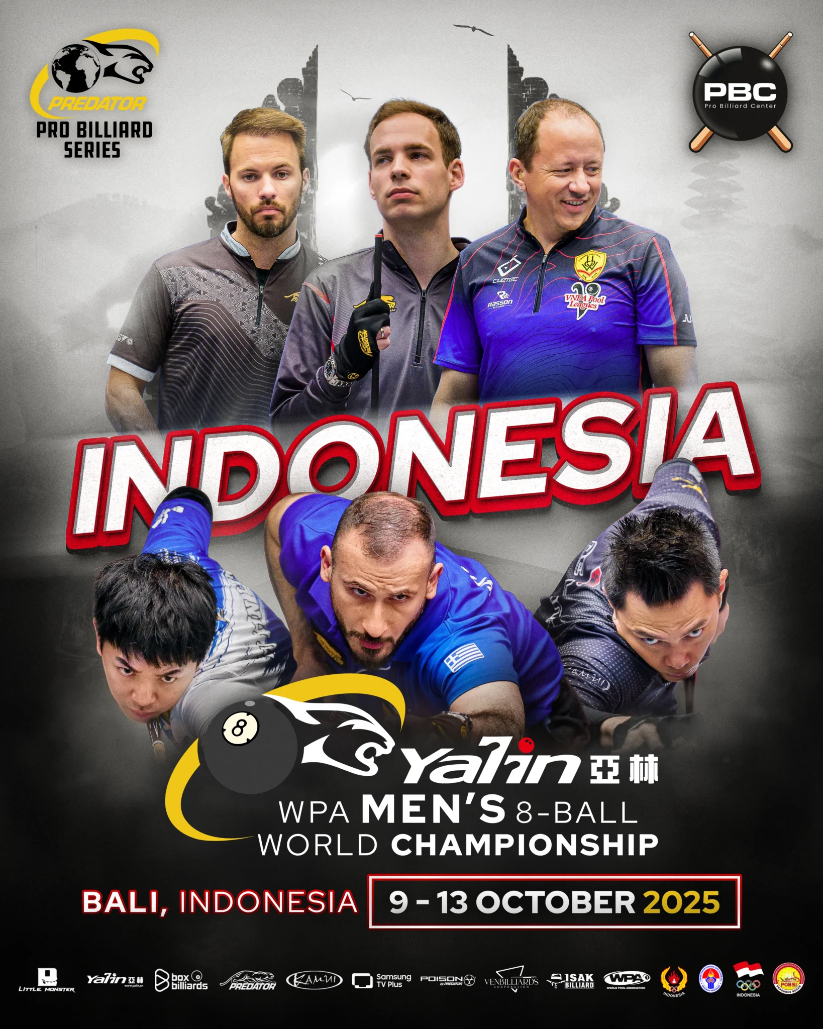 インドネシア・バリで戦われる3つの世界タイトル戦のメインイベントであるWPA公認の『2025 YALIN WPA MEN’S 8-BALL WORLD CHAMPIONSHIP』(男子エイトボール世界選手権)が9日(木)に開幕した。