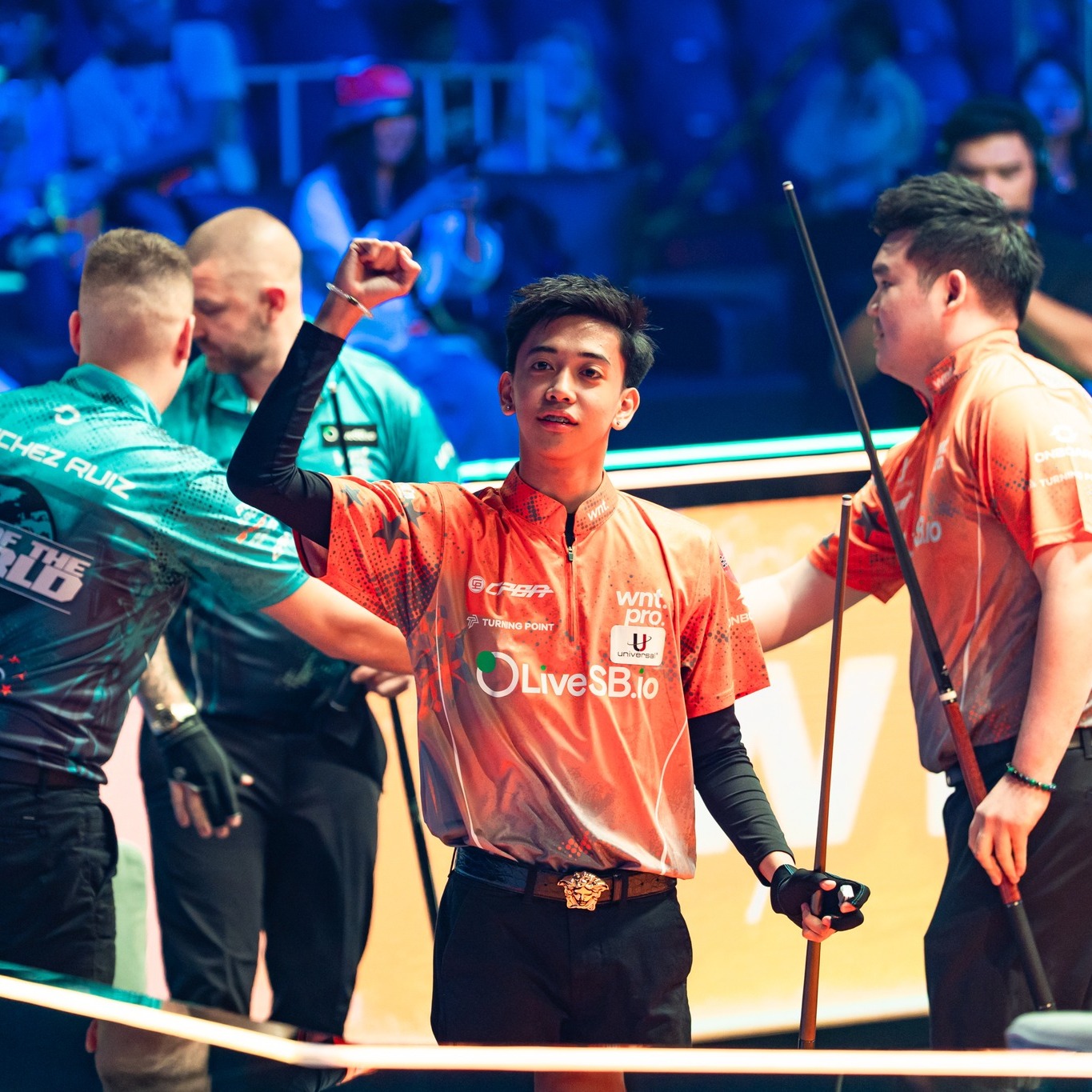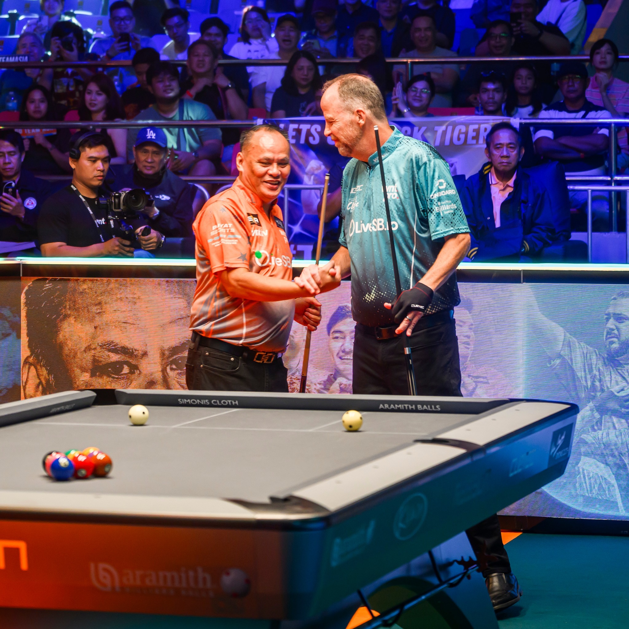 まずは先制したい世界選抜だったが、サンチェスルイスが⑥をミスし、ここからアジアの1番手のビアドが取り切って1-0。アジアはこの後、ゴーストのブレイクノーインからのチュアのランアウト、初出場のマナスのマスワリなど、1-1とされた第3ラック以降を素晴らしいプレーを見せながら全て取り、5-1で幸先の良い勝利を挙げる。