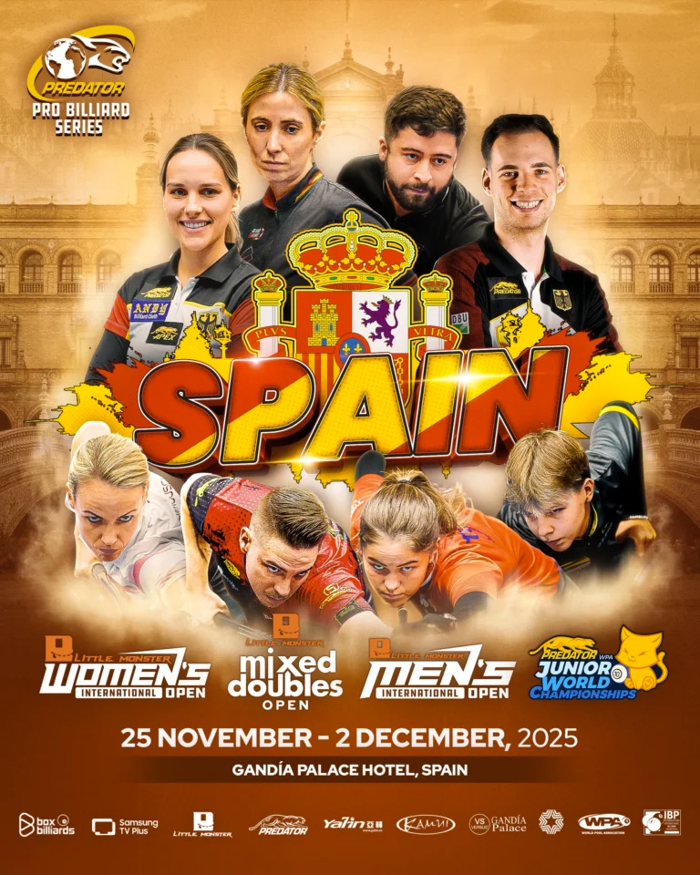 現地11月25日(木)、スペイン・ガンディアを舞台にPBSのプロモートによる、WPAランキングイベントの男女オープン戦、WPA公認のミックスダブルスとジュニアテンボール世界選手権が1つのパッケージとなったイベント『SPAIN 2025』(スペイン2025)がスタートした。