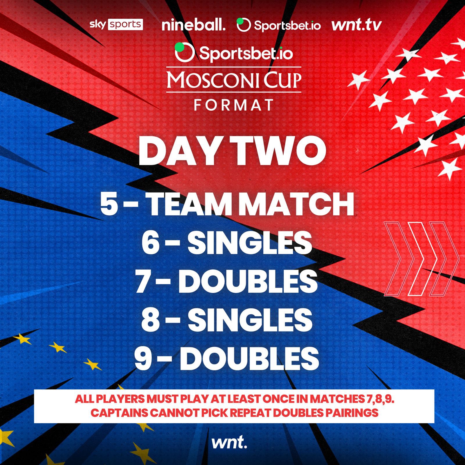 フォーマットは、5ラック先取(シングルス 、ダブルス、5対5によるチーム戦)で、先に11勝したチームが勝利となり、戦いは大会初日のオープニングマッチのチーム戦を皮切りに、4日間をかけて行われる。