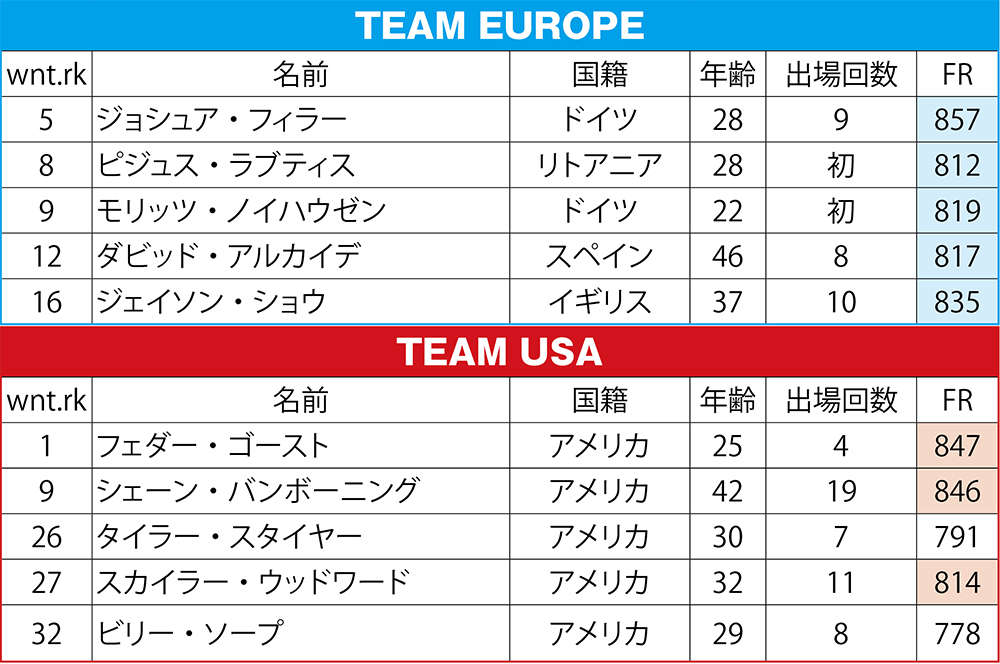 大会3日目はスケジュール通りであれば、ノイハウゼンとスタイヤーのシングルスからスタート。スタイヤーがチーム戦でのミスを引きずることなく、初出場ながら質の高いプレーで勝利に貢献しているノイハウゼンを下すことができるのか。すでに窮地に陥っているアメリカにとっては、この試合が大逆転劇に向けた重要な1戦となる。