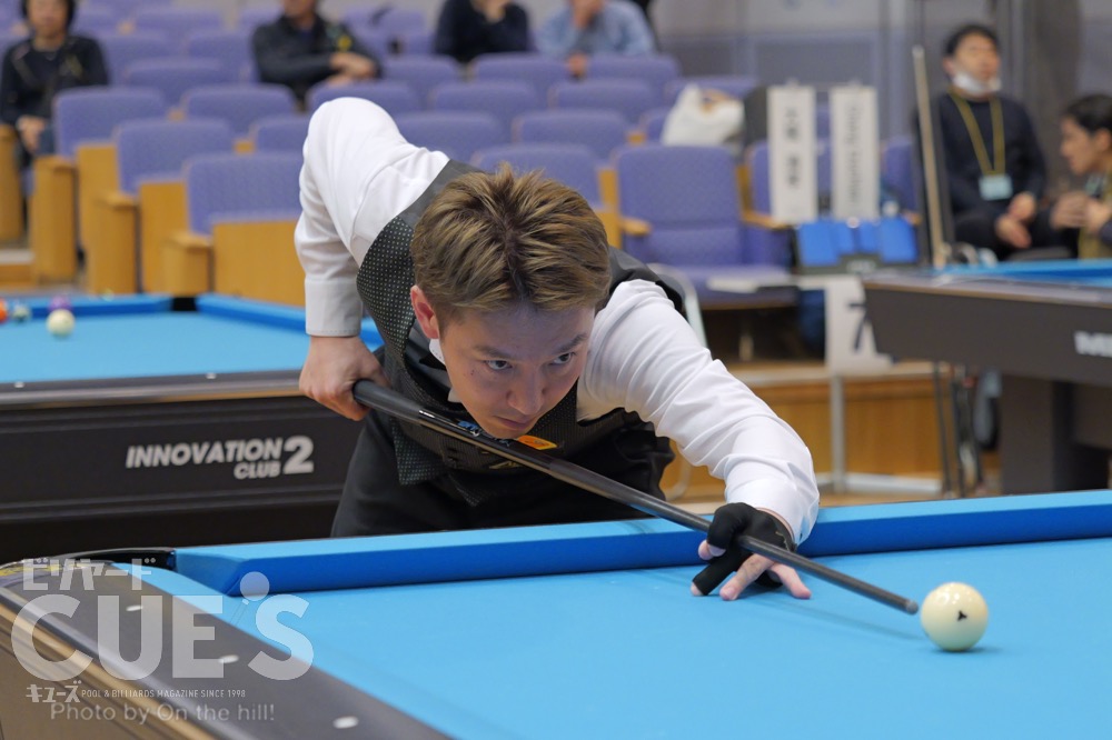原口に先制された後にすぐに逆転を果たした東條が序盤にポイントを重ねて第8ラックを終わって6-2。ここから原口も反撃を開始するが、その差はなかなか縮まらず東條が9-6でリーチ。その他全ての試合が決着を見る中、2人の戦いもクライマックスを迎える。