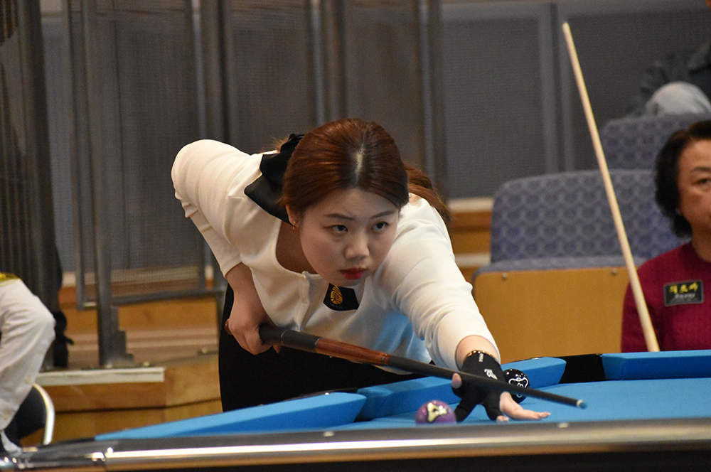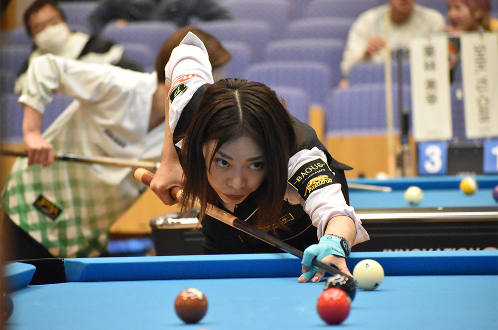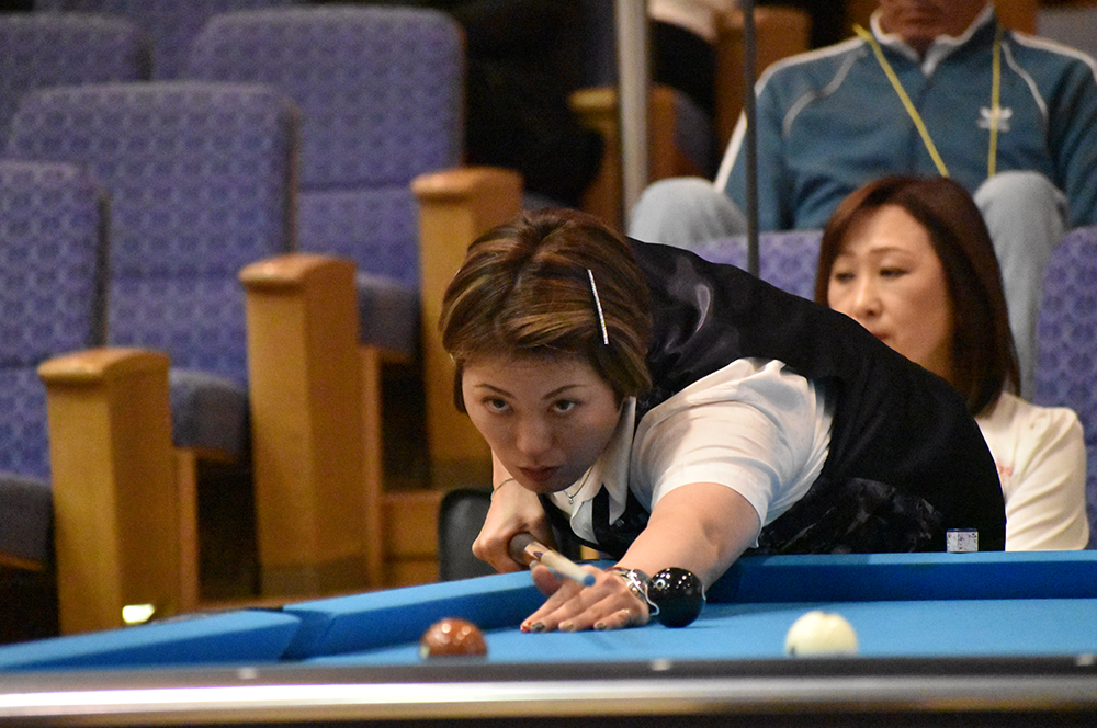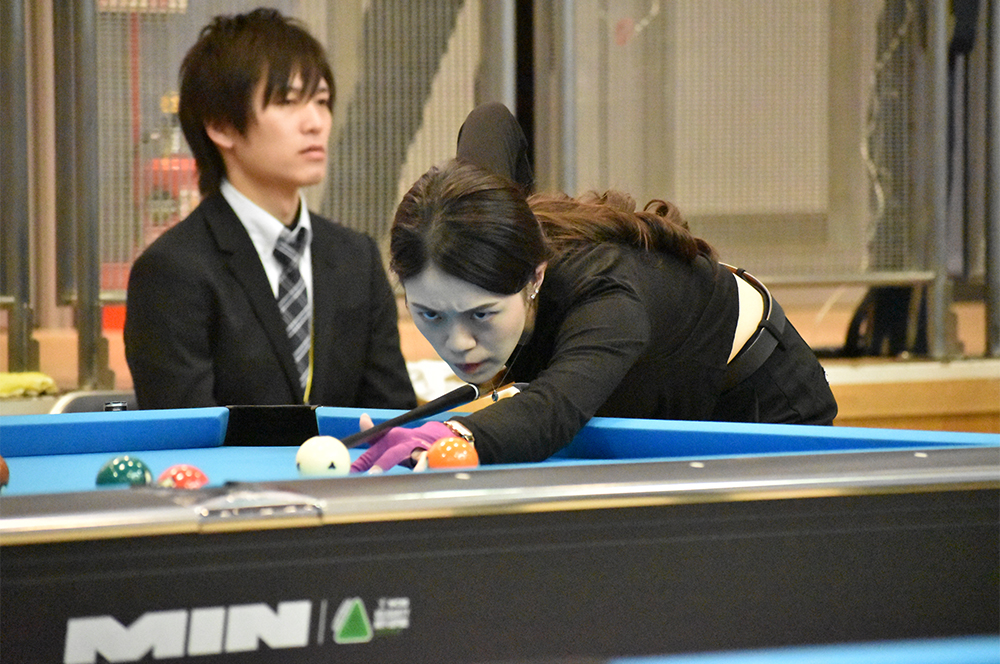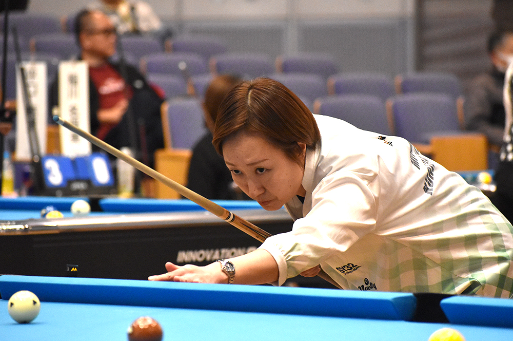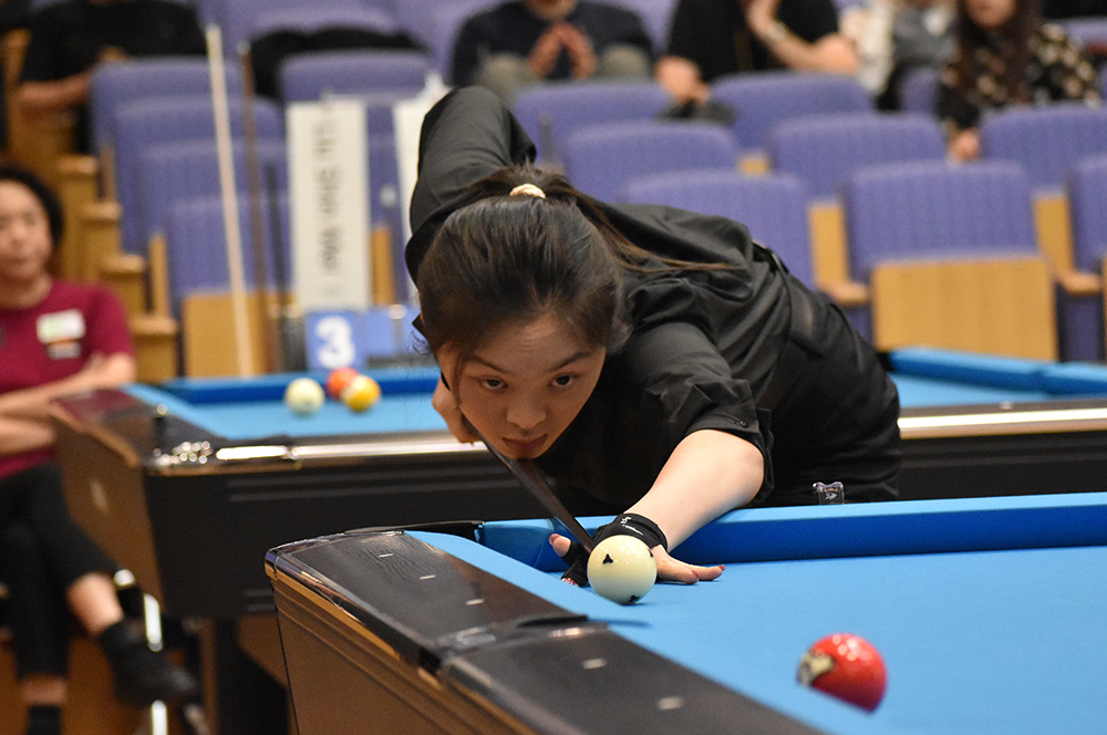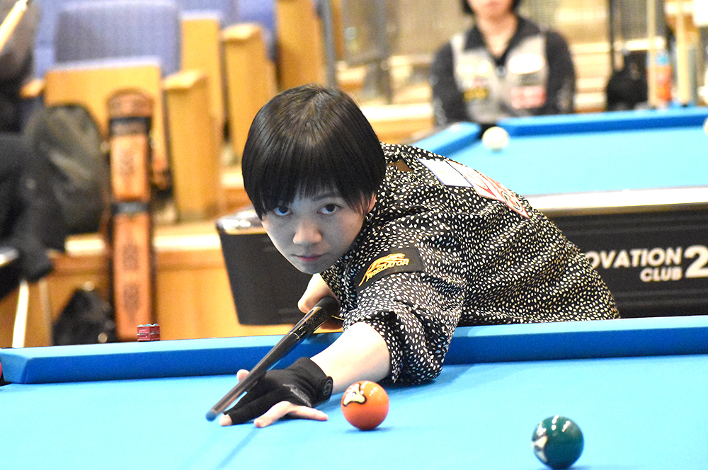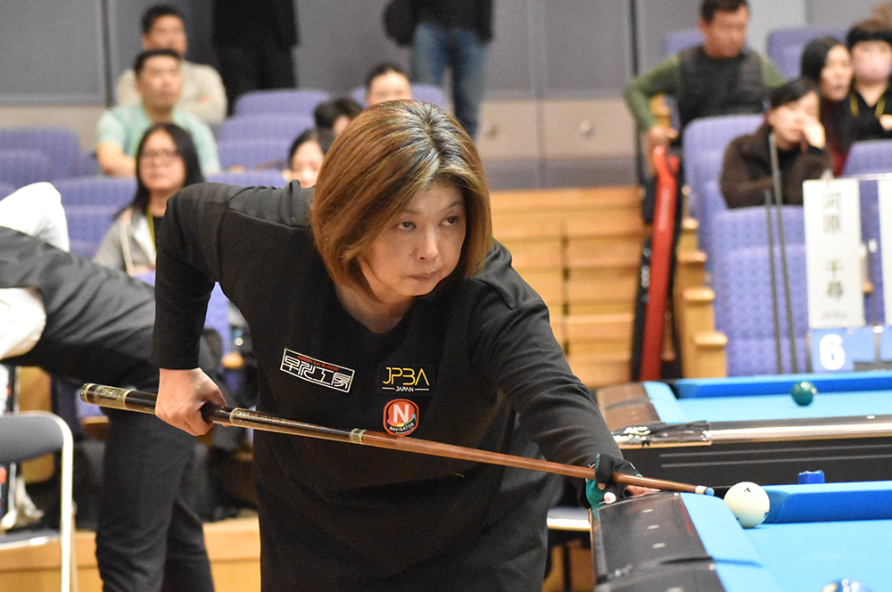 一方の女子ナインボールは、ここまで優勝候補筆頭の河原千尋(FR:753)が、ベスト32戦からの決勝トーナメントでも海外勢に対し盤石のプレーを見せて準々決勝に進出。