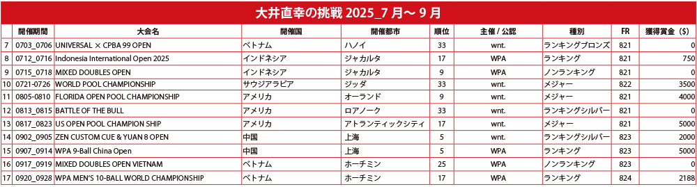 ヨーロピアンオープン準優勝で幸先の良いスタートを切った大井直幸。しかし、その後のアジア、アメリカでの連戦では世界のトッププレイヤーたちとの厳しい戦いが続いた。42歳にして世界の最前線で進化を続ける男が、シーズン中盤の戦いを振り返る。