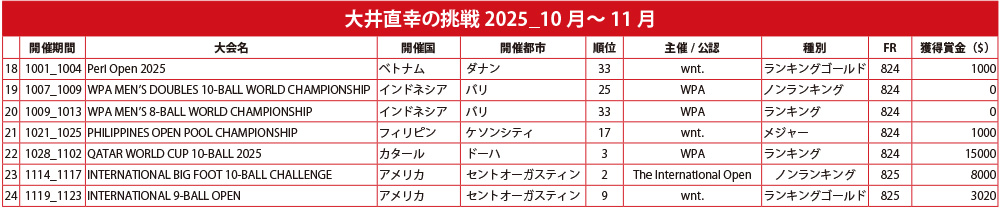 ——その後インドネシア、フィリピンを転戦して、アジアの最終戦は、カタールの『QATAR WORLD CUP 10-BALL 2025』でしたね。