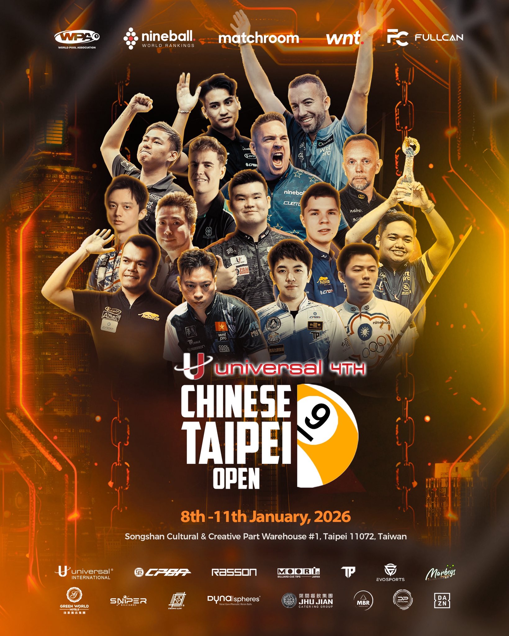 なお、今大会終了後の8日からは同会場で、2026年のwnt.開幕戦となる、賞金総額102,700ドル(約1,600万円)、優勝賞金30,000ドル(約470万円)のランキングイベント(ゴールド)『4th UNIVERSAL CHINESE TAIPEI OPEN』(台北オープン)が行われ、ここには以下のJPBAプレイヤーが出場する。
