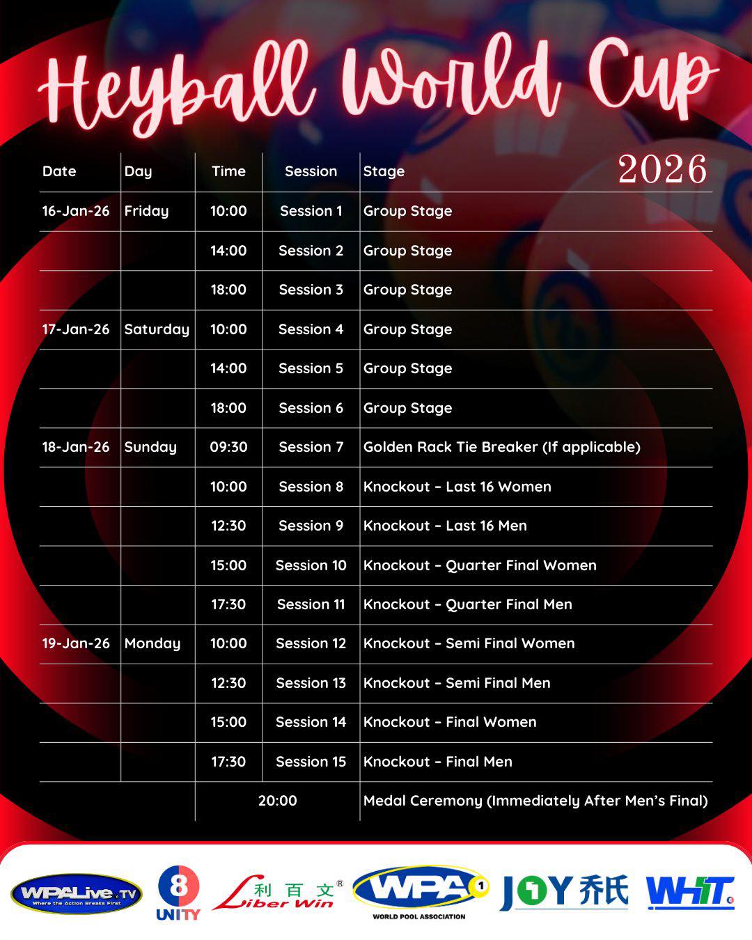 HEYBALL(ヘイボール)とは「チャイニーズエイトボール」として中国で最も親しまれているビリヤードで、ヘイボールという名称は、ワールドプールシーンを統括するWPAとテーブルをメインとした中国の巨大ビリヤード企業『JOY Billiards』(ジョイ)が3年前にパートナーシップを結んだことを受けて、世界共通のプールゲームの1つとして一新されたものだ。