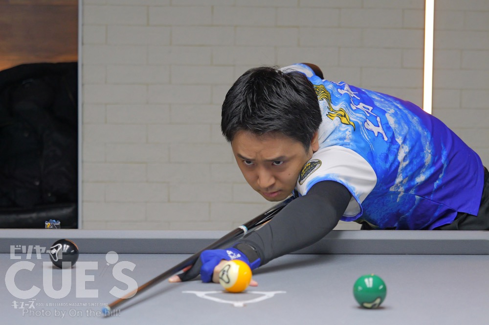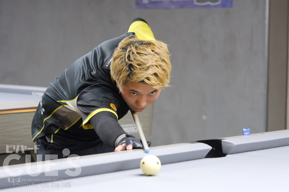 反対の山を勝ち上がって来たのは「大本命」第1シードの土方隼斗だ。昨年は全日本14-1優勝、GPイースト3勝と結果を出し、秋にはエイトボール世界選手権で3位タイ。準決勝は優勝したアルビン・オーシャンにヒルヒル負けという悔しい終わり方だったが、一昨年はチャイナオープンで準優勝と、着実に海外での結果も出始めている。
