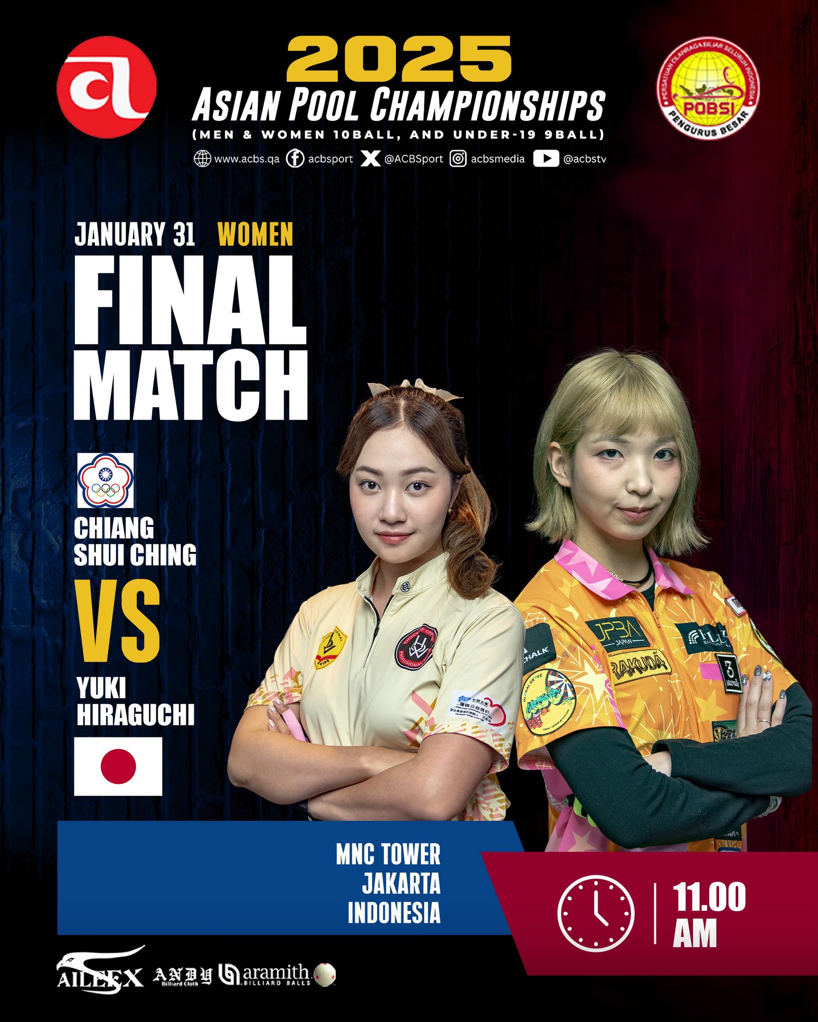 インドネシア・ジャカルタを舞台に1月27日(火)から5日間にわたって開催されてきた男女テンボール、U19ナインボールの3カテゴリーで争われる、ACBS主催による『2025 ASIAN POOL CHAMPIONSHIPS』(アジア選手権)の本戦・ステージ2が31日(土)に最終日を迎える。