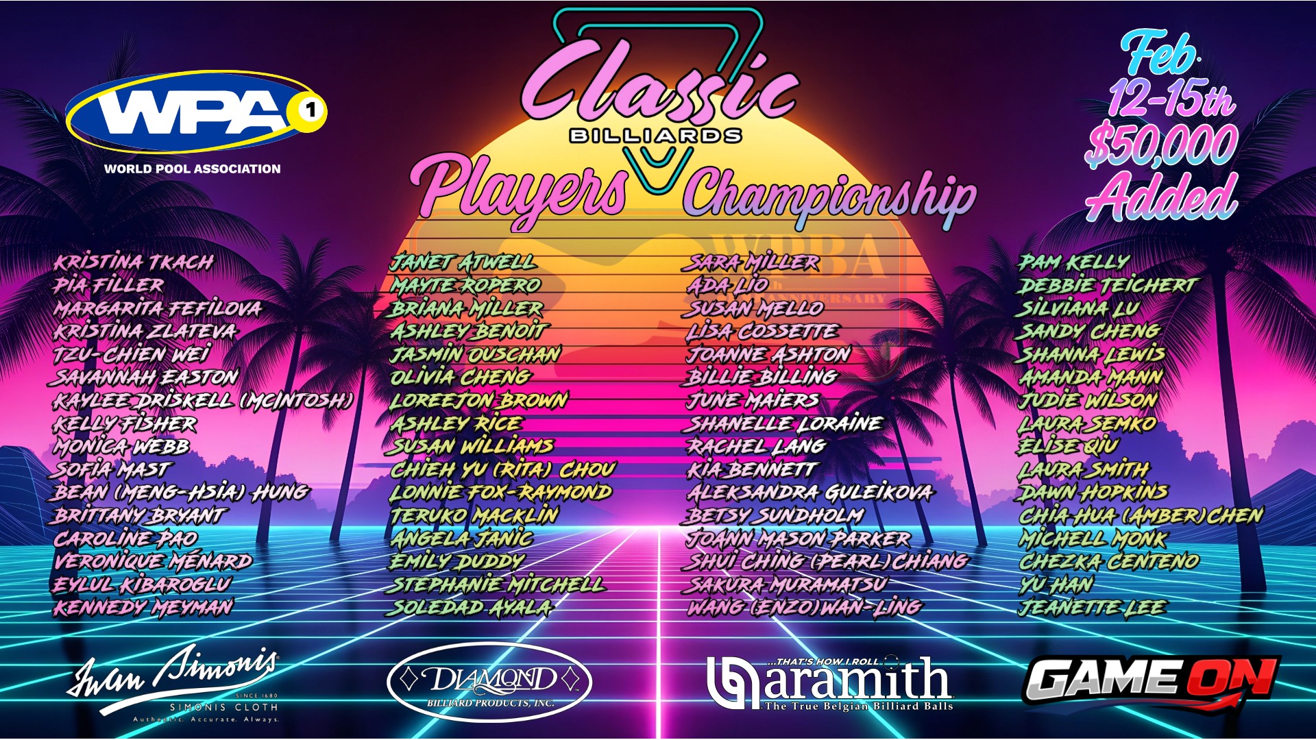 JPBAからここに挑むのが、アジア選手権男子テンボールを5位タイで終えた大井直幸(FR:825)と、女子テンボールで9位タイの成績を残した村松さくら(FR:684)2人。なお、今年も積極的に海外戦に挑戦中の村松は、この大会を終えた後、12日(木)からアメリカ・フロリダ州で開催されるWPBAツアー『WPBA Classic Billiards Players Championship』にも出場予定となっている。