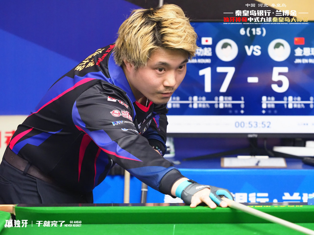 この厳しいフィールドに挑んだ杉山とセラディラ、まずは18時からセラディラが、昨年10月開催の『DUYA LEGENDS GOLDEN NINE CLASSIC』(優勝賞金4,000万円)で33位タイの成績を残している郭俊池(中国)と対戦。この試合は大金1、小金2(ブレイクエース1)とビッグポイントを重ねた郭に対し、7ラックを奪ったものの差を詰めることができなかったセラディラが34-63で敗れ敗者側に回ることとなった。