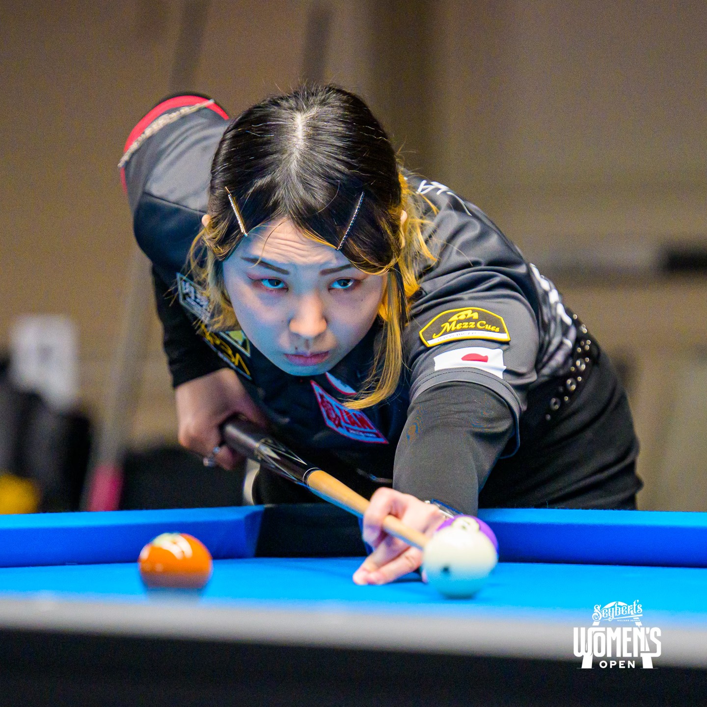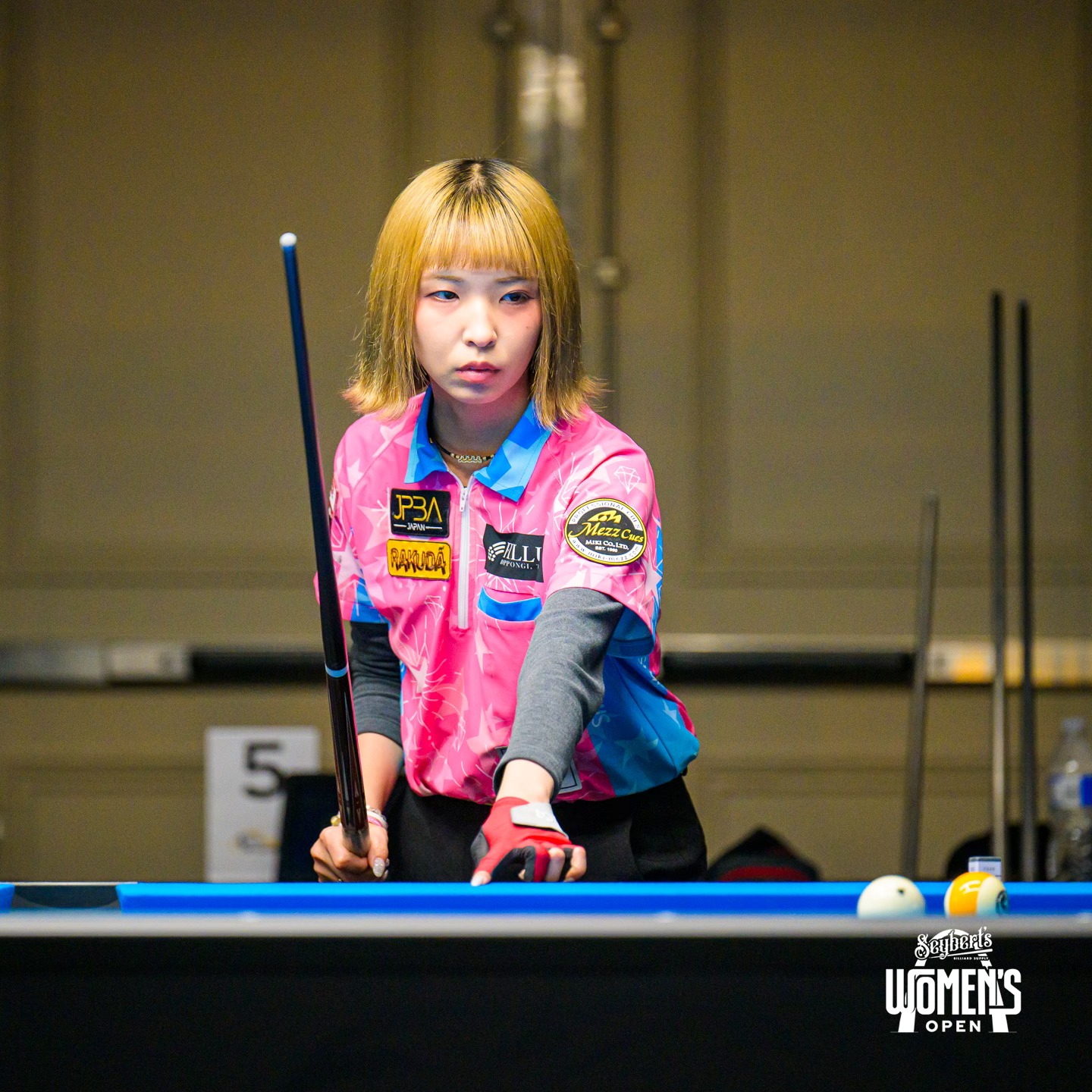 ワールドトップスターのほぼ全てが揃ったトーナメントには、『日本プロポケットビリヤード連盟』(JPBA)所属の河原千尋(FR:749)、平口結貴(FR:711)、小西さみあ(FR:675)、谷みいな(FR:680)、村松さくら(FR:686)の5名が出場。