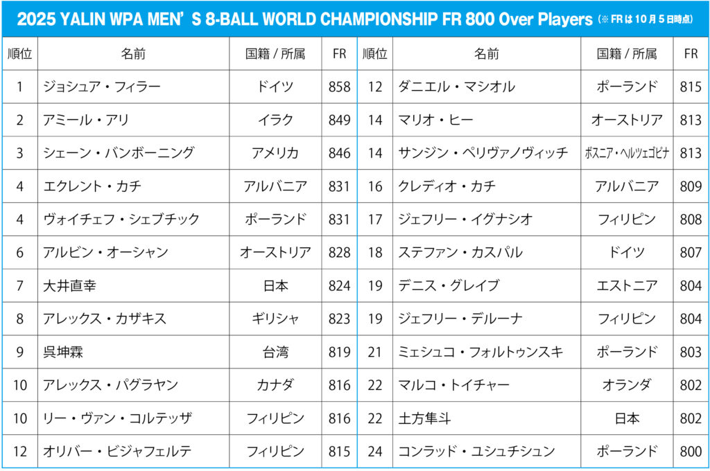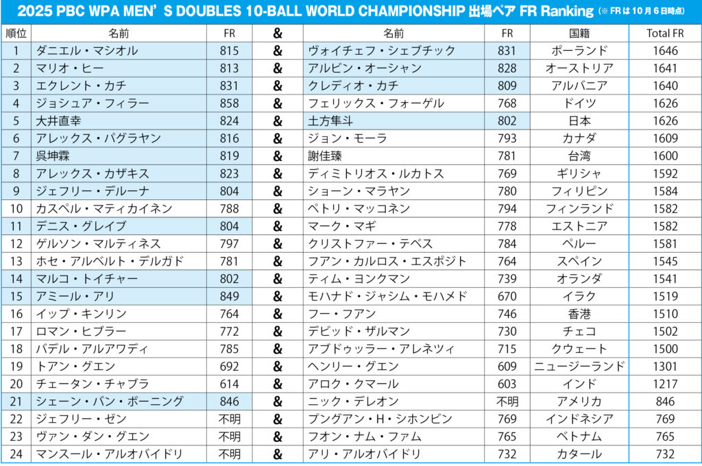 WPA公認、3つの世界タイトル戦は男子ダブルスからスタート