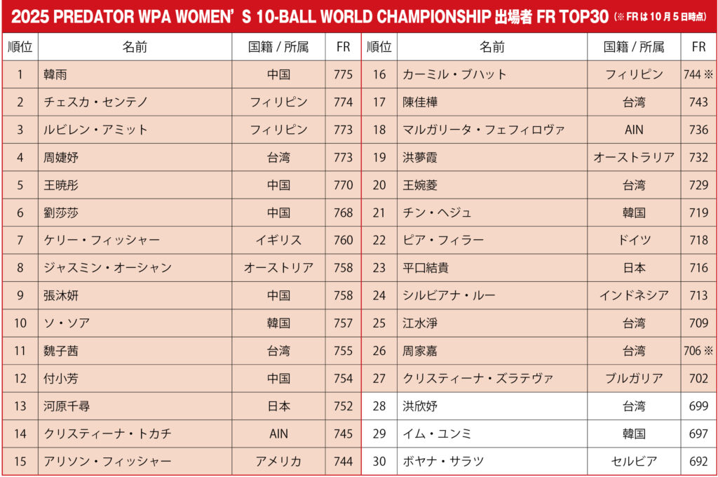 JPBAから6名が参戦する世界女王を争う大会は明日開幕