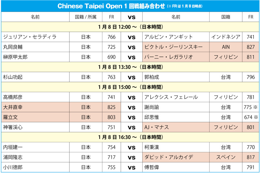 男子WPAランキングイベントは16日、ミックスダブルスオープンは17日から