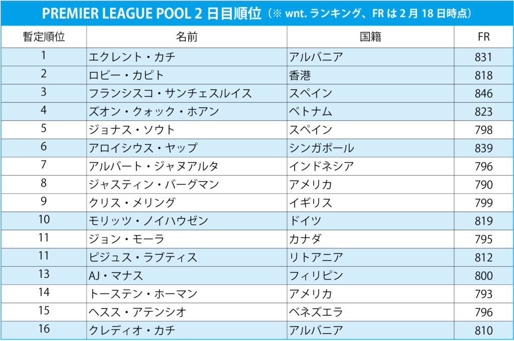 2日目を終えエクレント・カチが9勝1敗で暫定トップに