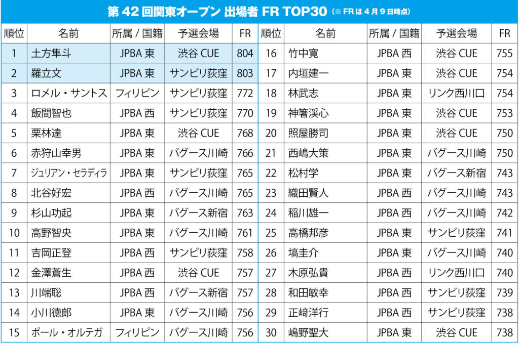 JPBA男子ランキング戦、202名によるテンボールバトルは明日から